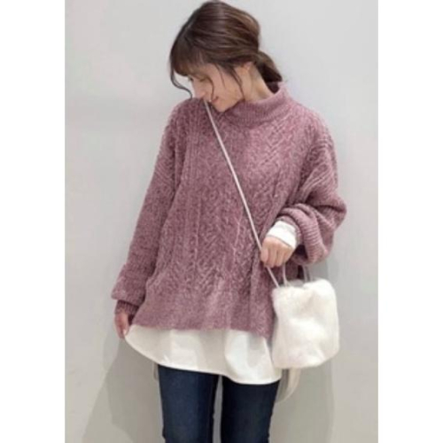 6成新earth music & ecology 紫色麻花編織感絲絨商城紗線柔和細膩毛衣L號