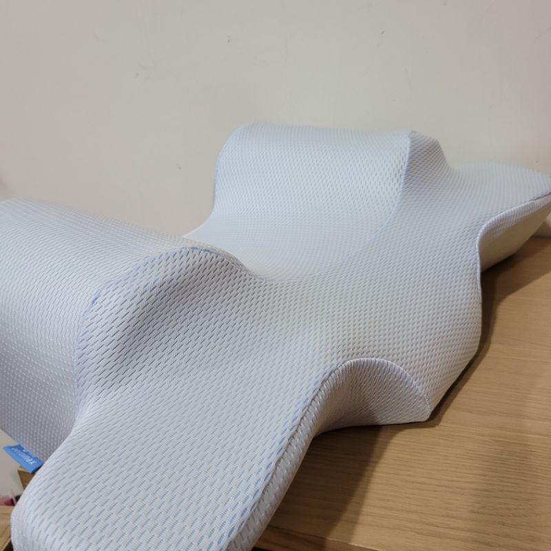#仰睡#枕頭#側睡#防皺紋#減少#頸紋#壓紋#眼角紋#魚尾紋#木偶紋#霜#乳液#防皺#皺紋#一夜#好眠#天絲#機能枕#生活#工場#人體工學#枕 1.用過兩個月,九成五新,便利店寄件有材積限制,會折疊出貨,可是不會影響原有枕頭形狀,材質是Q彈 有兩個枕套,藍色是涼感,白色枕套全新沒用過當初是加購。 因為發現常側睡面皺紋比較明顯搜尋後發現有人在賣這款枕頭,且評價不錯,所以抱持著實驗精神購入,因為側睡會兩邊有障礙所以頭只能微側所以決不會壓臉,脖子也會減少皺摺的地方,如果能習慣的話是個不錯的枕頭。 訓練自己一陣子還是發現習慣原有睡姿,可是至少不會翻身的太多,也許有人想挑戰看看可購入試試看。 2.95新生活工場一夜好眠天絲機能枕-有使用一個月,偏人體工學枕,偏軟,側睡有墊高可有效減少頸紋,買來使用看看,是不錯,如果有興趣使用看又不想花大錢買全新以免失敗可買,使用時都有用保潔墊加枕頭套 以下是官網介紹 嚴選認證的透氣舒柔天絲面料▶高密度一體成形記憶棉,完美貼合肩頸的蝴蝶型設計 可拆洗式枕套,乾淨安心,帶給您一夜好眠 [產品規格] 內容物:枕頭*1 尺寸:長34*寬61*高12CM 顏色:白色系 材質說明/成份: 上下表布(枕套):40%萊賽爾纖維(天絲)60%聚酯纖維 填充物(枕心)表布:100%聚酯纖維填充物(枕心):100%聚氨酯