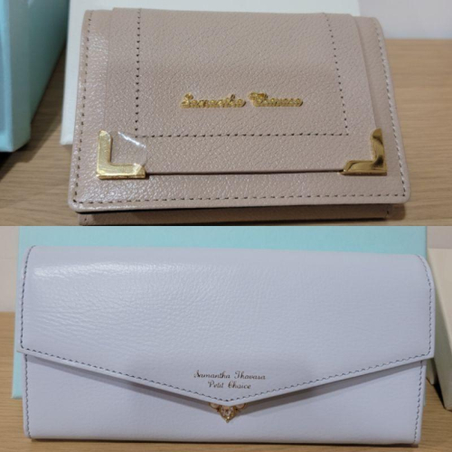 全新水藍色Samantha thavasa petit choice真皮長夾錢包與米色名片信用卡卡夾