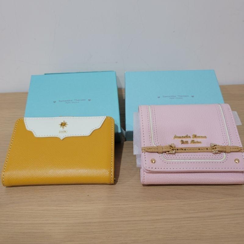 99新Samantha Thavasa petit choice 清秀鑽石小花真皮牛皮皮夾粉色短夾與太陽橘色亮麗卡夾