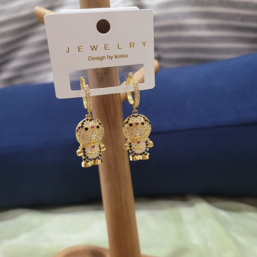 全新韓國製鑽爆小叮噹哆啦A夢金色耳扣式耳針耳環