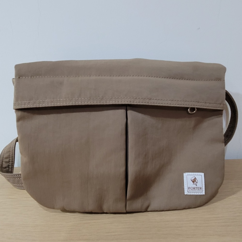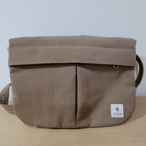 95新Porter International米色尼龍側背包小方包