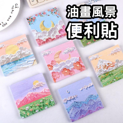 🔥【現貨】🦈油畫風景便利貼 便利貼 便條紙 風景便利貼 80入