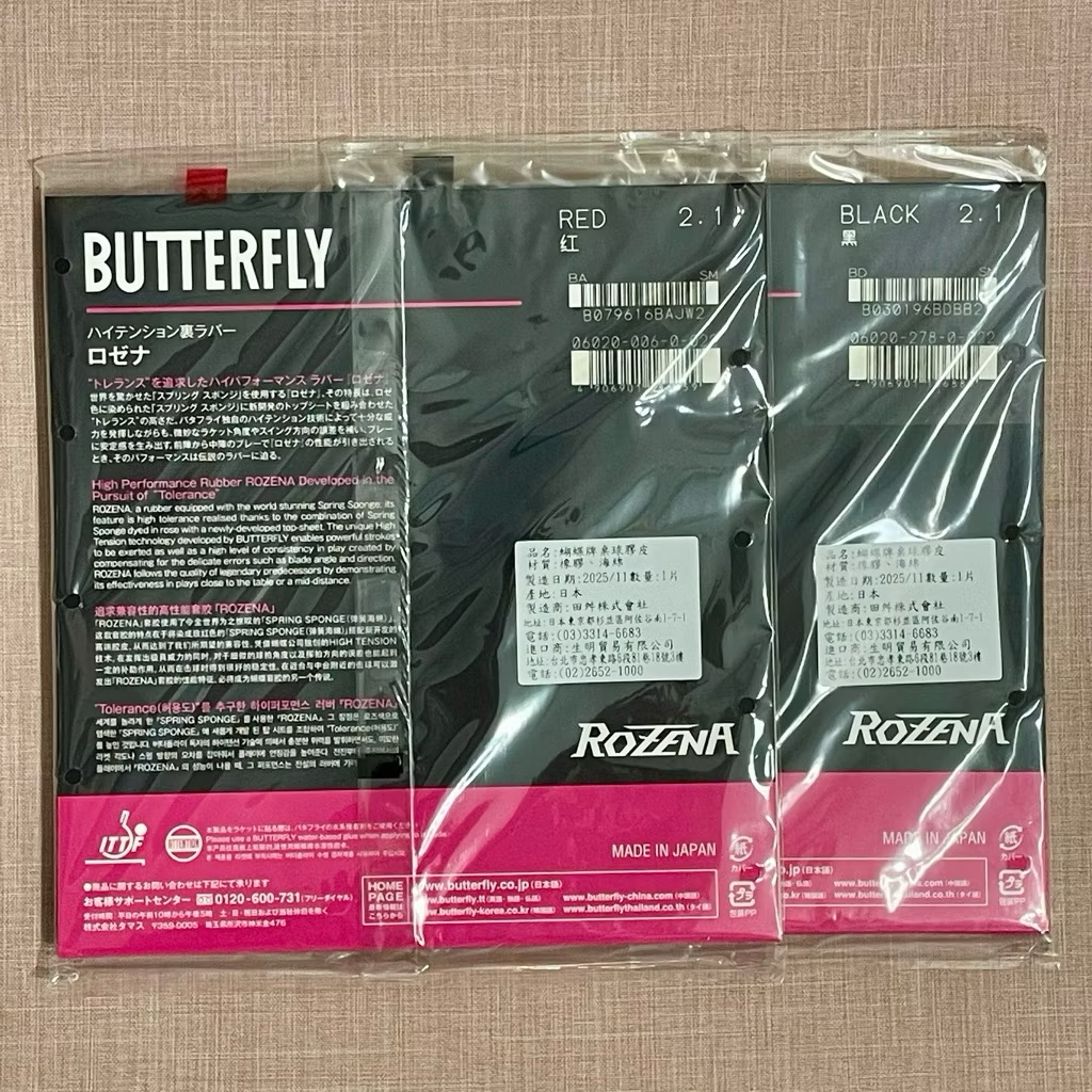 ROZENA 套膠使用了令全世界為之驚嘆的SPRING SPONGE。這款套膠的特點在於將染成粉紅色的SPRING SPONGE搭配專用的高端膠皮,從而達到了我們所期望的兼容性。憑藉蝴蝶公司獨創的HIGH TENSION技術,在發揮出極具威力的同時,對於細微的球拍角度以及揮拍方向的誤差也能起到一定的補助作用,從而在擊球時得到很好的穩定性。在近台與中台附近的擊球可以激發出ROZENA套膠的性能特徵。