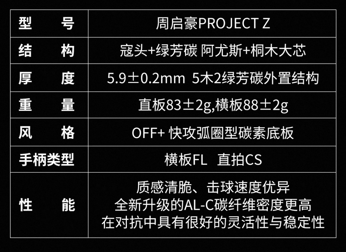 全新韓國製 雙魚 周啟豪特注 雙魚 Project Z 外置綠芳碳 ALC 桌球拍
