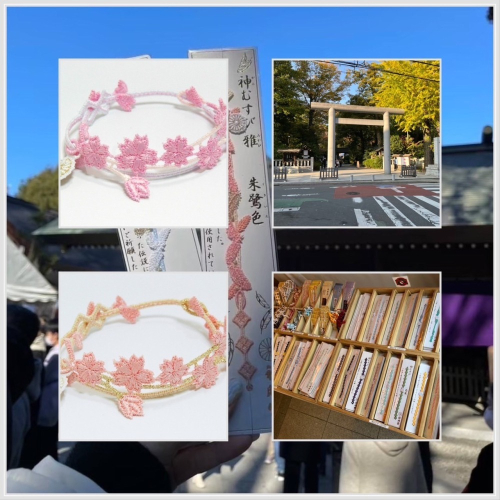 「神結」御守因色彩鮮豔、細緻花邊質感及可以提昇運勢,一直是神社人氣商品且在網路上頗受好評,深受女性青睞。而且是由巫女親手一個一個手工製作,是季節及數量限定的高級御守。