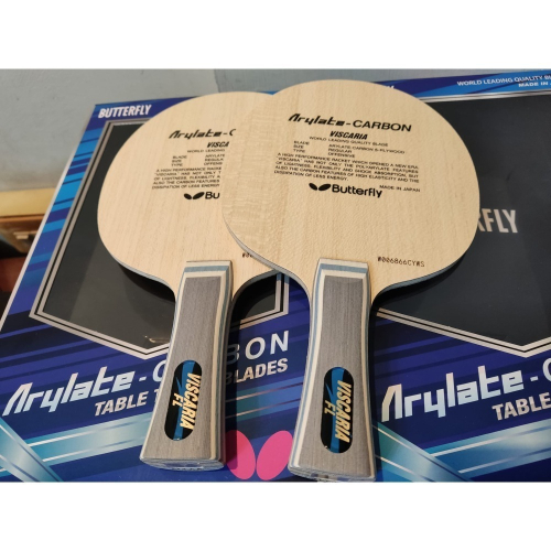 球板特性:Arylate的黏性將球抓住,而Carbon的彈性則將球反彈出去。是一種新素材將富威力的全方位攻守實現之桌拍。