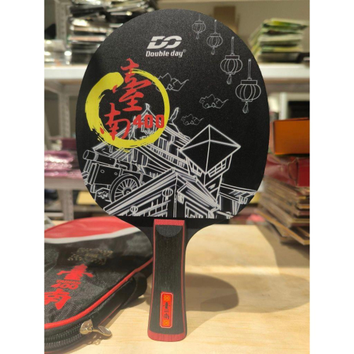 #含特製彩繪膠皮 Double Day 台南400紀念拍 膠皮訂製款 握柄FL 再贈送台南400紀念拍套一個 良心特賣整組只要$999 極具紀念意義 歡迎台南朋友購買收藏 此拍為紀念意義,膠皮是訂製彩繪款,表面無摩擦力,無法上桌打請特別注意