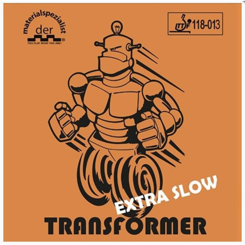 Transformer Extra Slow 是一種極具破壞性的防旋轉橡膠,具有長倒立的點,現在採用 Der Materialsspezialist Reflection 的超慢海綿。這種組合可以實現高水平的控制和減速。能量吸收的增加允許更短的方塊,這對你的對手來說是困難的。海綿越厚,速度越慢。重要提示 - 使用提供的說明將所有 Der Materialsspezialist 防旋轉橡膠與膠紙(應單獨訂購)粘合。如果不遵守說明,損壞的防旋轉橡膠的退款索賠將不予受理。