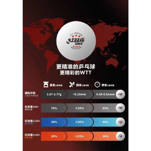 『良心桌球小舖』紅雙喜 D40+ 三星比賽球(WTT巡迴賽款/東京奧運東奧款)