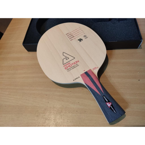 兩年前JOOLA推出速度與控制力兼具的全面型球板ROSSKOPF FORCE。在當時造成的 全球熱烈迴響,但是與其他廠牌一樣,到了無機時代,不能使用快速膠水就代表著球板的 速度需要有所提升!因此在2009年JOOLA推出了最新一代的專業型球板ROSSKOPF EMOTION。 JOOLA ROSSKOPF EMOTION延續著FORCE的全面性與穩定性!進化的卻是那驚人的速度, 與無比的力量,讓無論是快攻選手還是弧圈選手在速度與質量方面都可以獲得滿足,尤其他球速 快卻又不失穩定的狀況下,讓很多國內選手都紛紛更換舊武器而改用ROSSKOPF EMOTION,目前台 灣的男子國手黃聖盛、女子選手熊乃儀和有“台灣版郭躍”的小將鄭怡靜都使用此款球拍。 此板結構為5木2碳,結構分別是檜木.KOTO.CARBON.AYOUS。這樣錯綜複雜的結構造就出層層 的手感,也就是為什麼ROSSKOPF EMOTION可以在有著強烈的力量之餘,又能保留住穩定的控制能 力。表面的兩層檜木擊球時可以將球咬進去,增加球的旋轉度,接著傳遞到第二層的KOTO。KOTO 大家都知道,就是硬!用KOTO來支援球上方的兩層檜木,可以讓回擊的球變得有底勁,當相持的或 打過渡球時,KOTO會支援球的力道,不會因為選手本身沒有發大力,而使球變得比較軟。而兩層 CARBON的存在當然就是此把球拍力量的主心骨!可以說是與兩層的KOTO相輔相成!而最裡層那 厚厚一層的AYOUS就是為了避免當選手發大力時失控,當大力擊球的瞬間傳遞到中間的AYOUS時可 以降低你失控的可能性。增加打球的穩定度。 ROSSKOPF EMOTION可以保有原有的穩定度卻又讓速度變得更快重點在多了兩層的KOTO。當同 樣都是CARBON板相比,誰比較暴力,就是比木材的力道了,多了這兩層的KOTO力材使此拍的力道 超越了其他CARBON板 而ROSSKOPF EMOTION還有一項經典之處,在於它是第一把joola使用奈米科技技術製作而成的球 板,大家一定很納悶,球拍也能加上奈米科技!是的,JOOLA的設計理念一直走在世界尖端!從過 去的MCD技術(複合式雙層拍)和MCS複合式系統技術,一直到現在的奈米科技技術,這都是JOOLA 前衛的創新。而奈米技術對球拍所造成的作用是,可以提供試用者擁有更大更好擊球點及高準確度。 簡單來說,就是可以增加使用者的手感,推翻了過去纖維拍皆無手感的刻板印象!.