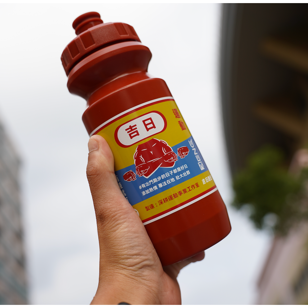 深耕運動與吉日跑班聯名,以臺中人一眼就能感受到齒間香氣的辣椒醬瓶身為設計概念,致敬但不抄襲,把吉日跑班眾多元素融入其中,以招牌的擊拳動作作為主題,帶著滿滿的臺中口味!