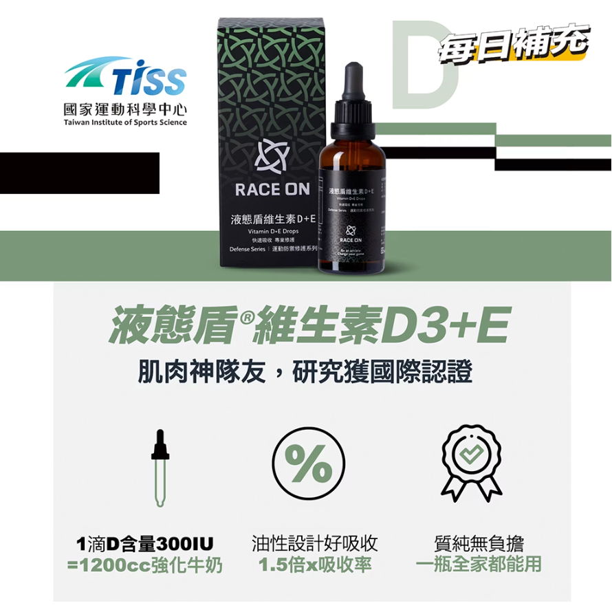 【Race On 銳速】液態盾維生素 D3+E 滴劑
