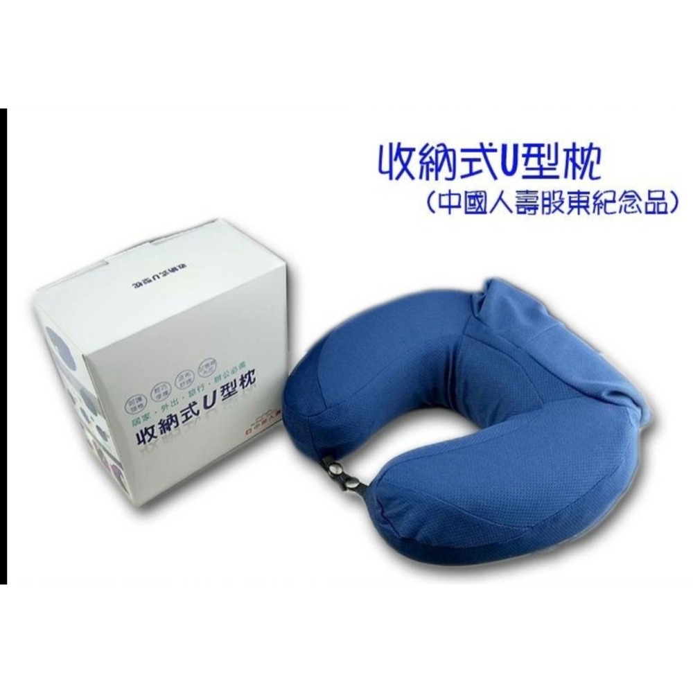 全新 中壽 中國人壽股東會紀念品 收納式U型枕 記憶枕 記憶棉 頸枕 深藍色