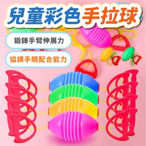 品名:兒童彩色手拉球 產品特性: 📌 鍛鍊手臂協調能力 • 開合之間輕鬆鍛鍊,讓孩子在遊戲中強化手眼協調能力! 📌 伸展運動,增強肌力 • 透過反覆拉合動作,幫助孩子伸展四肢,促進骨骼生長發育,鍛鍊手臂力量! 📌 親子互動,樂趣無窮 • 需要兩人合作操作,增進親子間的互動樂趣,拉近彼此關係! 📌 精細圓滑工藝,安全耐用 • 採用圓潤溝旋設計,精細做工,確保遊戲過程安全不刮手! 📌 圓邊握手設計,不易傷手 • 舒適握手設計,輕巧順手,玩樂更安心! 📌 韌性繩子,結實耐用 • 高韌性抗磨損材質,經過打蠟處理,不易斷裂,耐玩持久! 📌 光滑洞口,減少阻力 • 出線洞口經光滑處理,拉動更省力,遊戲體驗更加順暢! 📌 顏色鮮豔,吸引孩子注意力 • 多種亮麗色彩設計,增強孩子對顏色的辨識能力,讓遊戲更加有趣! 📌 團隊合作,促進友誼 • 需要雙人互相配合才能玩,培養孩子的協作能力與社交技巧! 📌 環保材質,厚實耐用 • 採用環保厚實塑料製成,安全無毒,家長更放心! 這款兒童彩色手拉球不僅好玩,更能幫助孩子提升體能發展,是親子互動、朋友遊戲的最佳選擇!🎉💡 商品材質:塑膠 適用年齡:3歲以上 商品款式:顏色隨機出貨 商品尺寸:總長約160cm 商檢字號:M74381 批號:2401001 https://s-cf-tw.shopeesz.com/file/tw-11134208-7rbk8-m7tdt97fmwqsae