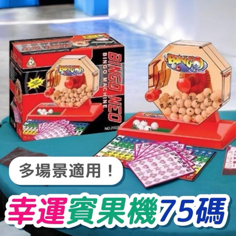 品名:幸運賓果機75號 產品特性: 1. 標準75碼設計 適用於經典Bingo賓果遊戲,內含1-75號數字球,符合標準規則,讓遊戲更具挑戰性與趣味性。 2. 高品質實果機 透明八角形滾筒設計,結構穩固耐用,旋轉順暢不卡頓,確保每次遊戲的公平性。 3. 簡單操作,樂趣無窮 轉動手柄,隨機掉出號碼球,讓遊戲過程充滿期待與驚喜,適合多人互動。 4. 大字數字球,易於辨識 配備白色大字數字球,清晰易讀,即使是年長者或小朋友也能輕鬆辨識數字。 5. 適用多種場景 無論是家庭聚會、派對活動、學校課堂、社區活動,都能成為歡樂的焦點,增進親子與朋友間的互動。 6. 多張賓果卡牌 內附多張賓果卡,隨機分發給玩家,讓遊戲更有變化性,挑戰運氣與策略。 7. 趣味娛樂,增進專注力 透過數字遊戲,訓練數字認知、專注力與反應能力,讓學習與娛樂兼具。 使用方法 1. 裝填數字球 • 打開實果機的上蓋,將1-75號數字球放入機器內,再將蓋子蓋回。 2. 開始遊戲 • 轉動機器手柄,使內部數字球攪動均勻。 • 當球掉落時,玩家依照號碼標記賓果卡上的相對應數字。 3. 獲勝條件 • 玩家按照事先設定的賓果遊戲規則,例如完成一條直線、橫線或對角線,即可大聲喊出「Bingo!」獲勝。 商品材質:塑膠、紙 適用年齡:3歲以上 商品內容物:果機X1、賓果卡X6、主板X1、號碼球X75(含5顆備用球) 商品尺寸:20.5X9.5cm 包裝尺寸:21.5X10.5X17.7cm 商檢字號:M63551 批號:2501002 https://s-cf-tw.shopeesz.com/file/tw-11134208-7rbkc-m7pbqk0wmp9ha8