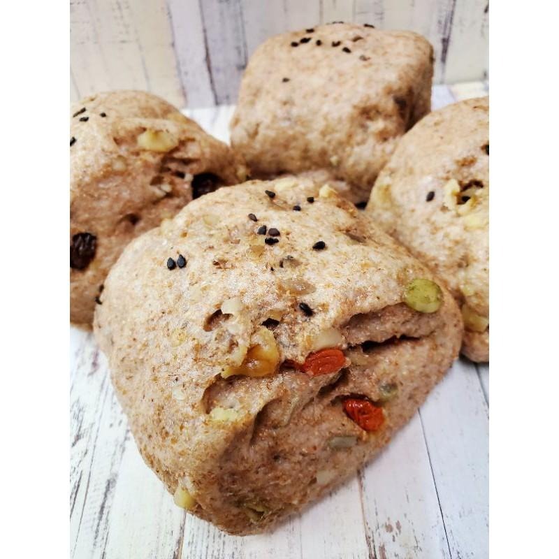 成份:純麥粉,新鮮酵母,水,南瓜子,葵瓜子,枸杞,葡萄乾,核桃,腰果,芝麻