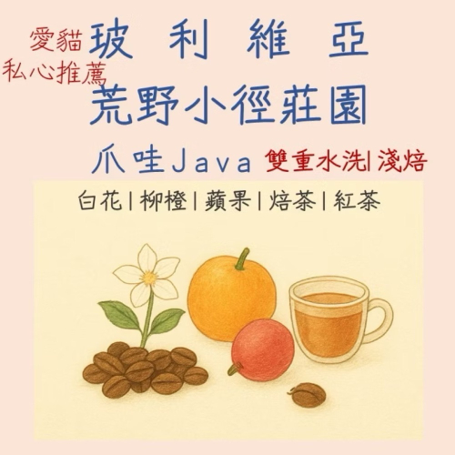平價好喝的玻利維亞爪哇,白花香帶乾淨水果調,愛貓自己很喜歡尾段的焙茶感,推薦給喜愛乾淨優雅調的朋友。