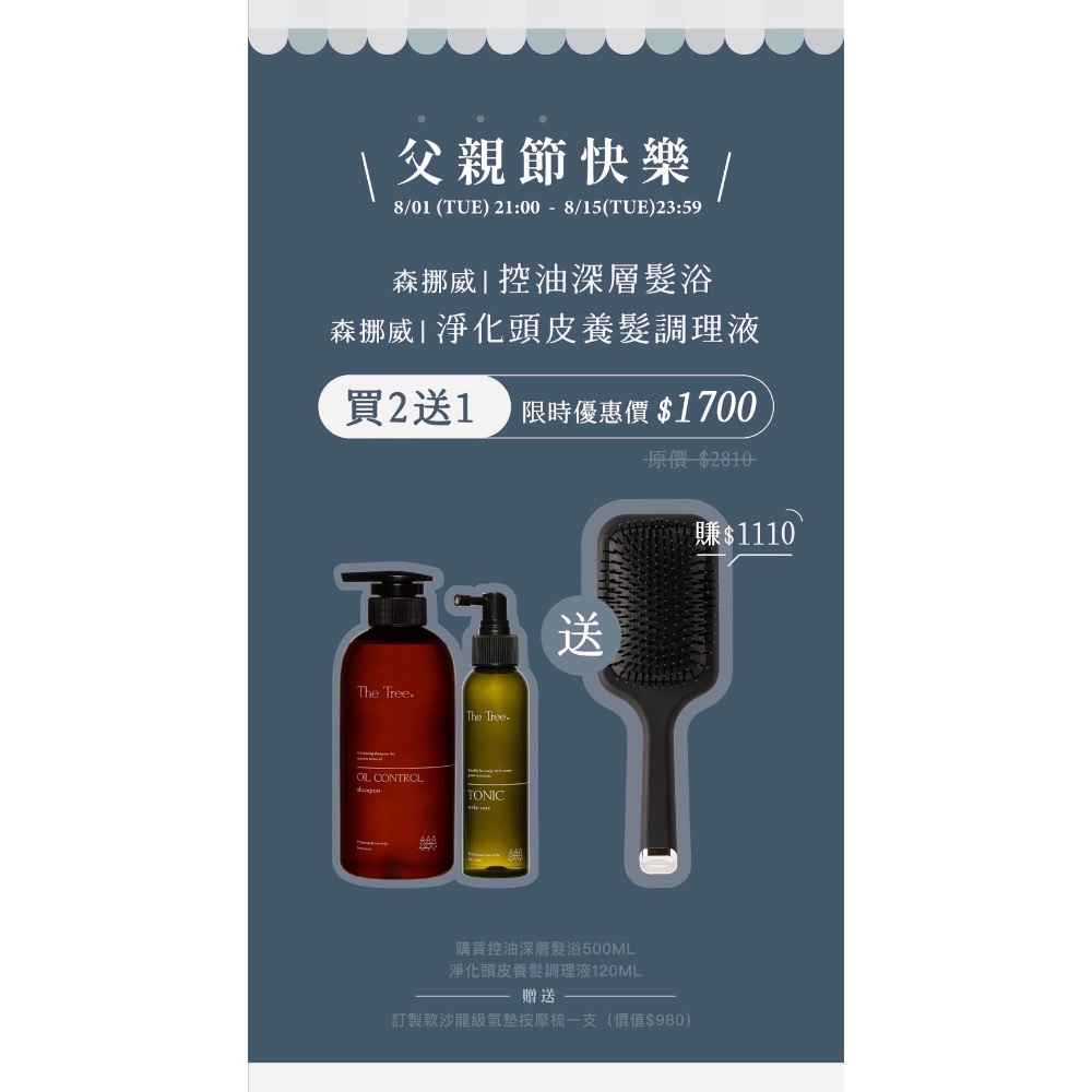 森挪威🌲控油髮浴+養髮調理液就送訂製氣墊梳