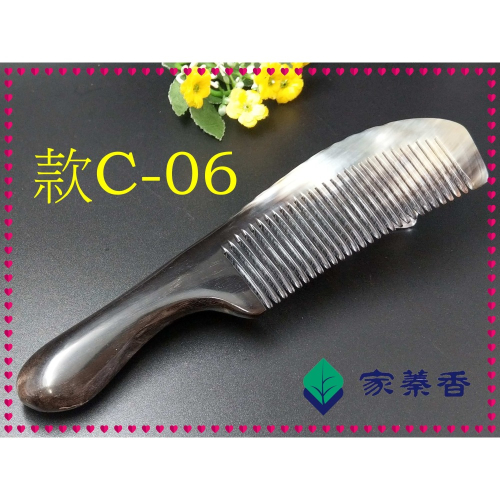 【家蓁香】精品特選 牛角梳 手感厚實 純天然黑花牛角梳子 手柄形状如商品圖 纯手工黑花牛角梳子(款C-06)