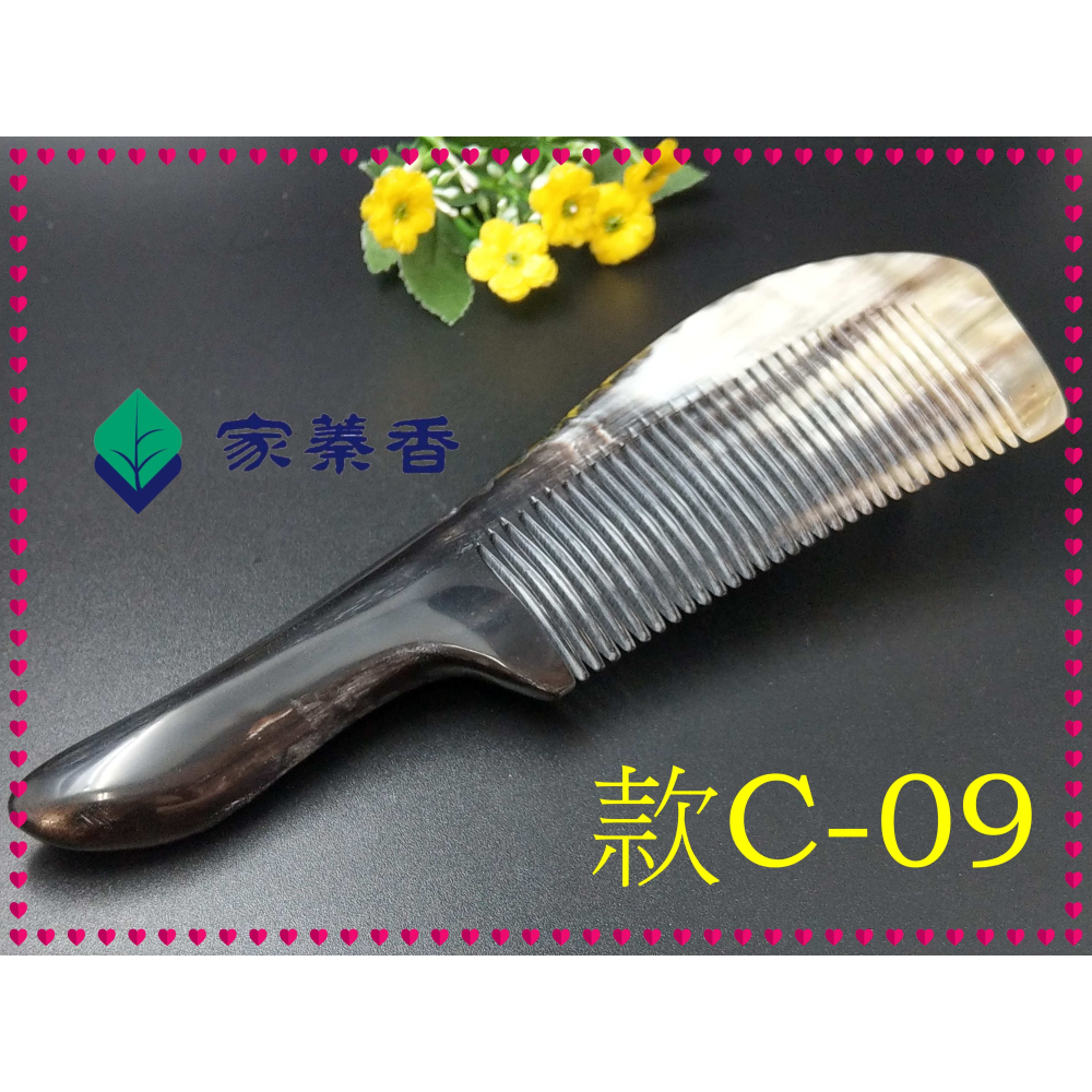 【家蓁香】精品特選 牛角梳 手感厚實 純天然黑花牛角梳子 手柄形狀如商品圖 纯手工黑花牛角梳子(款C-09)