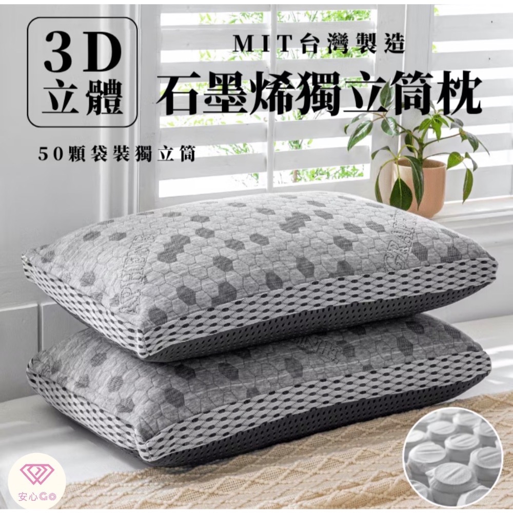 3D 石墨烯獨立筒枕頭 台灣製 透氣枕頭 天絲 飯店枕 助眠枕 枕芯 防蹣枕 枕頭 民宿枕 獨立筒 導電紗科技
