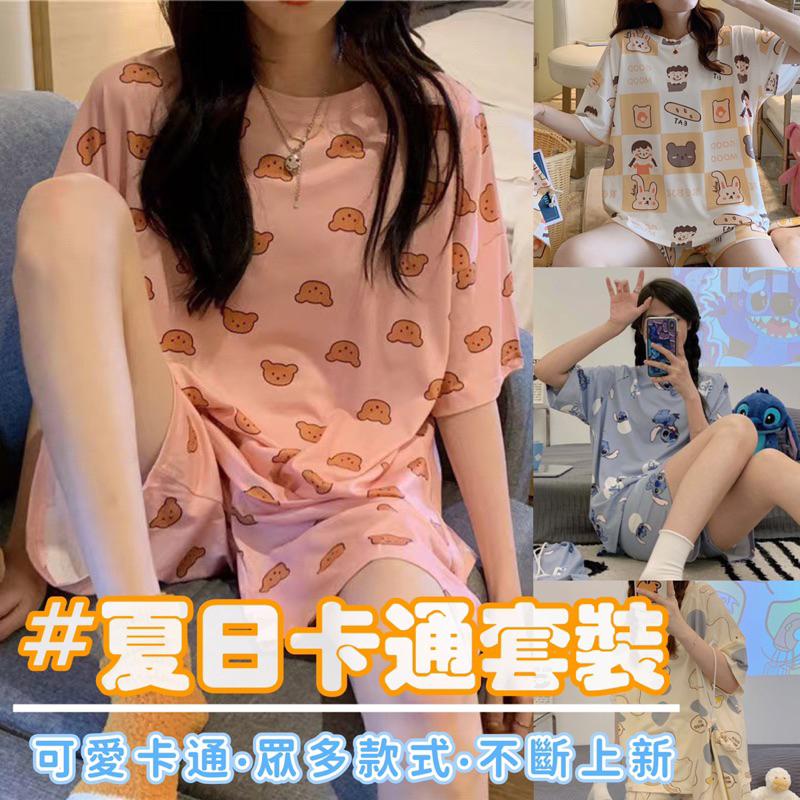 2023夏日新品🔆卡通套裝 連身裙 短袖套裝 冰絲涼感 牛奶絲 休閒服裝 睡衣 居家服 熱銷款式 台灣現貨