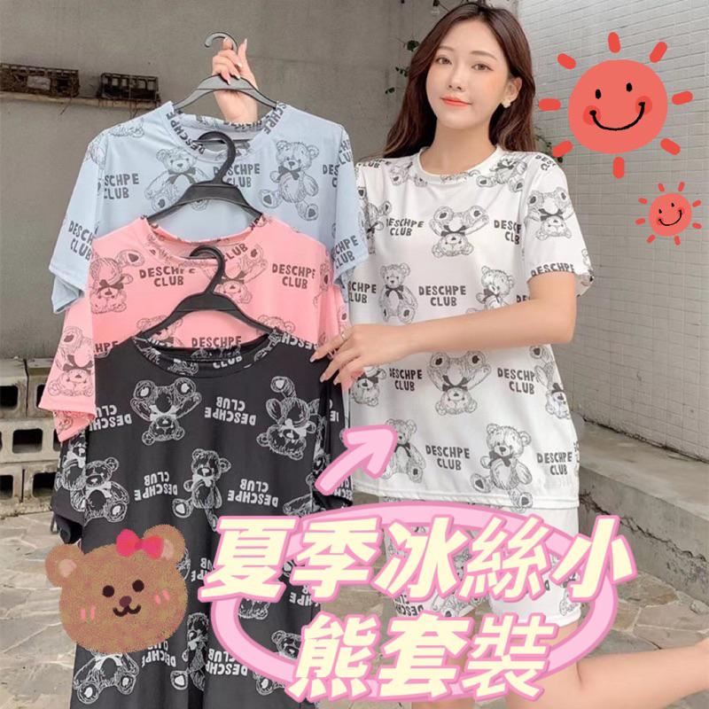 夏季冰絲小熊閨蜜套裝睡衣女家居服短褲短袖可愛睡衣 褲兩件套