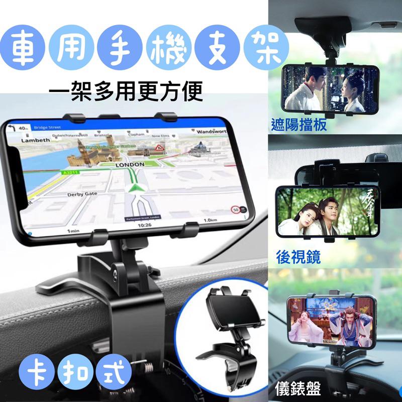 跨境車載手機支架汽車多功能旋轉車內用儀表 盤後視鏡導航支架