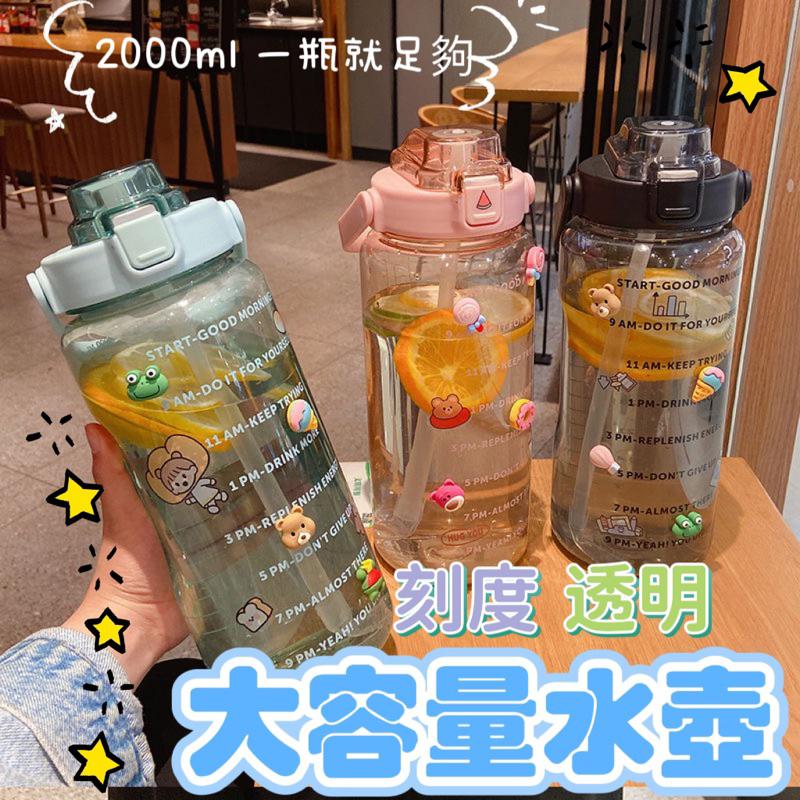 台灣現貨🇹🇼免運優惠✨ 透明殼度水壺 夏天必備 清涼喝水 2000ml大容量水壺 健康喝水 水壺 水杯 喝水 夏天