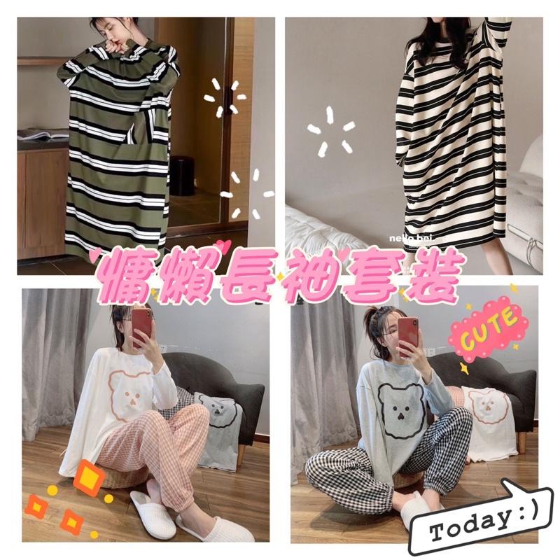 慵懶風長袖睡衣❤️ 睡衣褲 睡裙 慵懶風 可愛熊熊 長袖 冬天睡衣 舒服 居家服 台灣現貨 可愛秒出