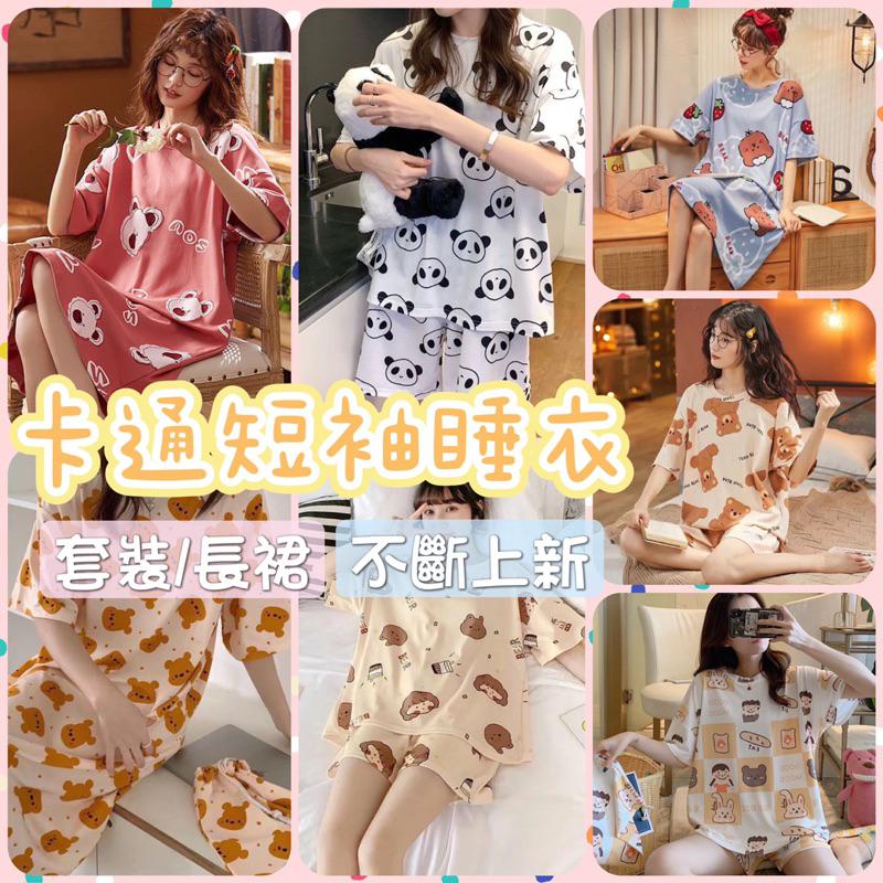 現貨寄出🔥免運優惠 夏季新款居家服 卡通款式設計 短袖睡衣 居家生活 居家服 睡衣套裝 短褲短袖 連身裙 睡裙