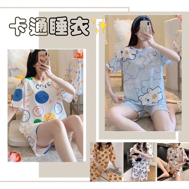 ✨六月生活✨夏季新款休閒套裝 卡通睡衣 居家服 夏天短袖睡衣 套裝可愛套裝 休閒服 舒適寬鬆套裝 睡衣居家服