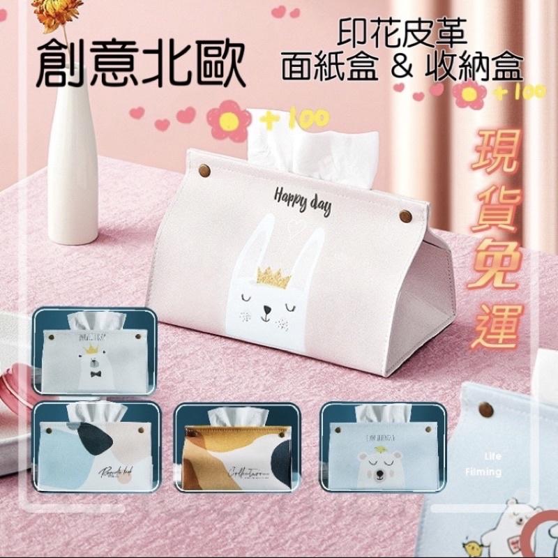 六月🔸台灣現貨🔸幾何圖形面紙盒 北歐風格 收納盒 卡通印花 按扣客廳餐桌抽取式面紙盒