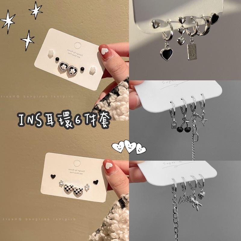 六月生活✨INS六件套耳環 耳環套組 風格耳環 時尚搭配 耳環耳針 韓國時尚