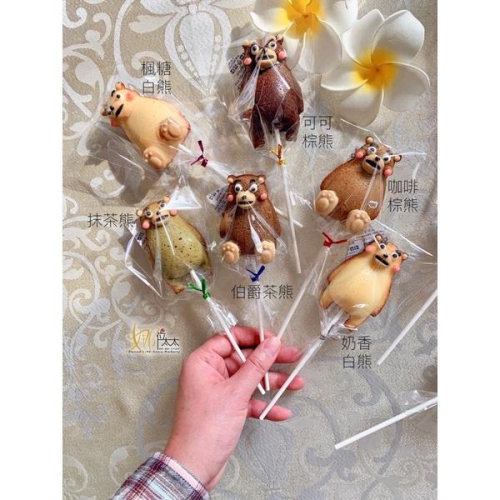 娜位太太賣場中的瑪德蓮,可加價幫您包裝成棒棒糖蛋糕。