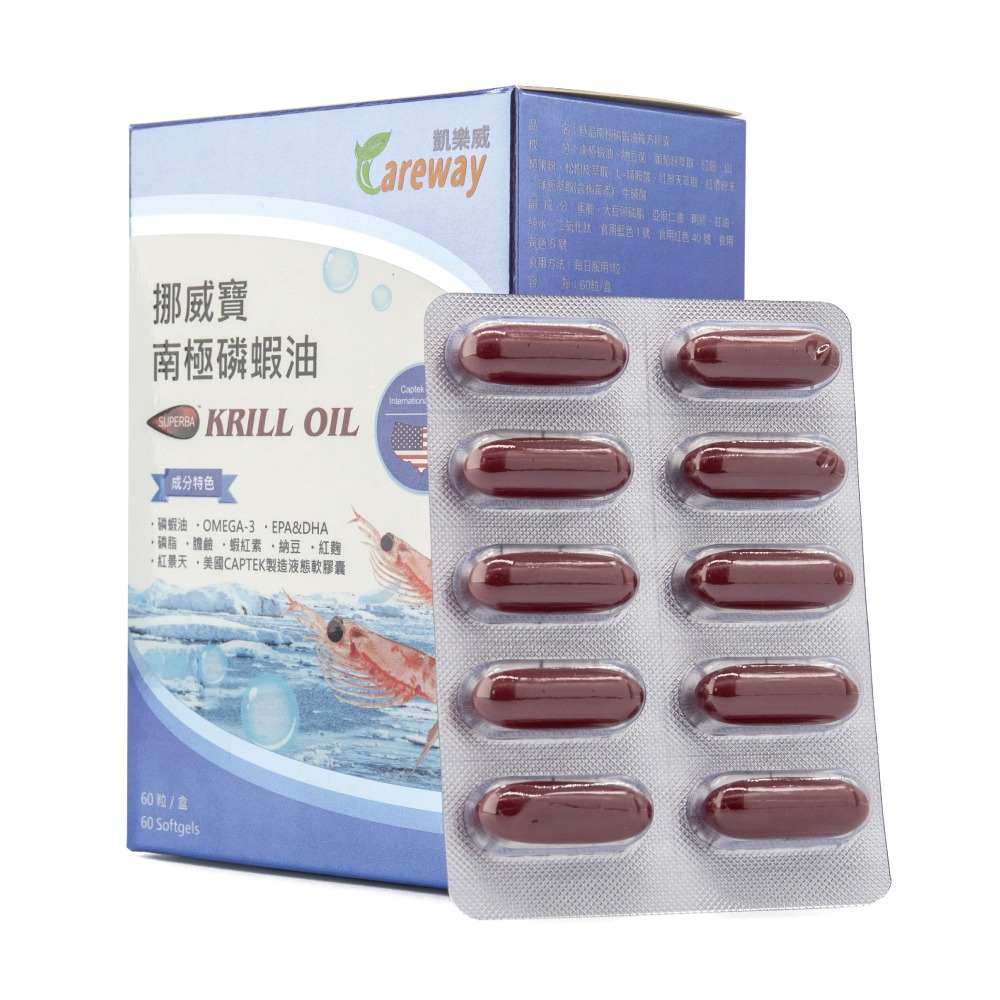 品名:凱樂威Careway 挪威寶 極品南極磷蝦油複方膠囊 60粒/盒