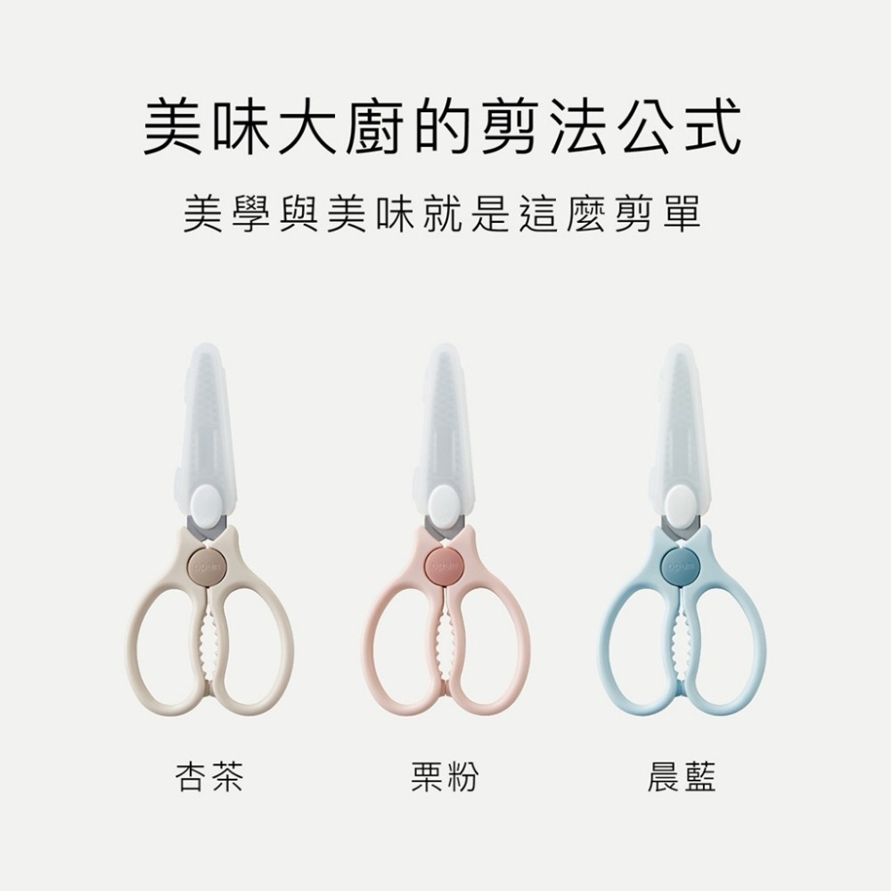 使用方式:將食物剪從刀套抽出,按壓OPEN解開安全鎖即可使用。