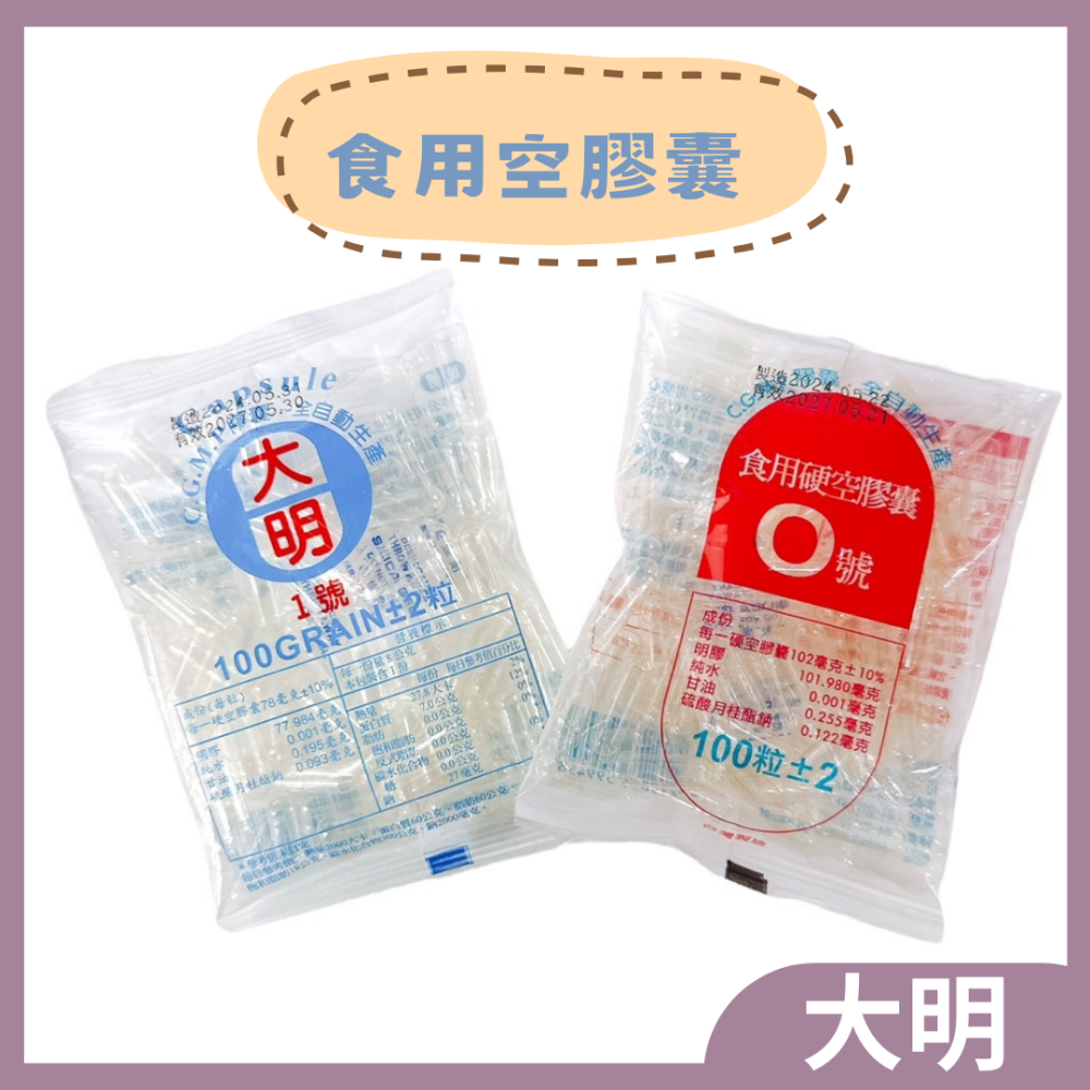 品名:大明空膠囊 (0號/1號)食用硬空膠囊