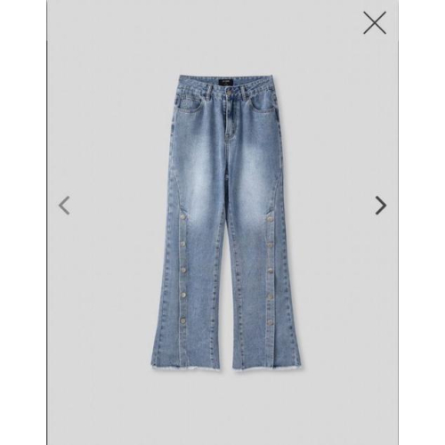 【全新】WAVE SHINE 率性排扣丹寧長腿褲 淺丹寧S