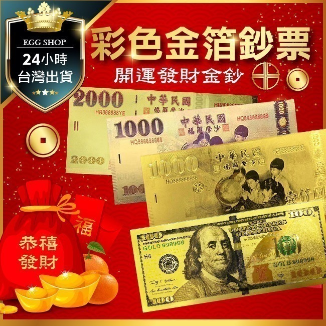 【新台幣金箔鈔票】(鈔票正反面都有圖案)