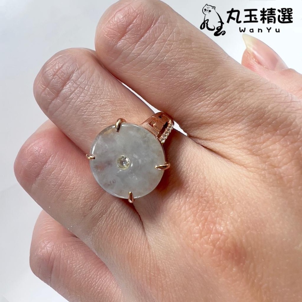 【丸玉精選 WanYu】冰透淨雅平安扣戒指 925銀 天然翡翠 戒指 銀飾 可調式 半寶石 鑑定 證書 A貨 禮物