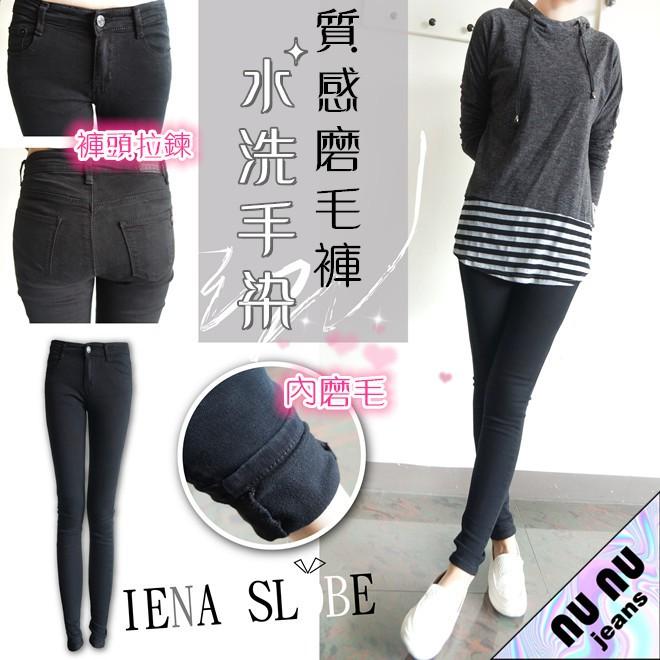 NUNU🍓S~XL手感水洗黑色韓妞必備磨毛褲NO.913-739