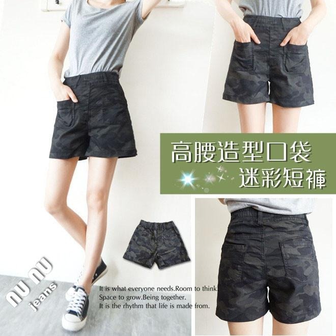 高腰A字休閒短褲/迷彩褲/迷彩短褲/高腰短褲/休閒褲/口袋休閒褲/寬鬆短褲/女生短褲.NN.366.578