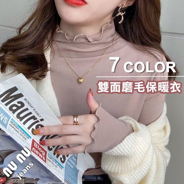 秋冬必備 立領 木耳邊 純色 保暖衣 半高領 上衣 發熱衣 雙面輕磨毛 刷毛衣 打底衫 顯瘦上衣 女裝 保暖 素T