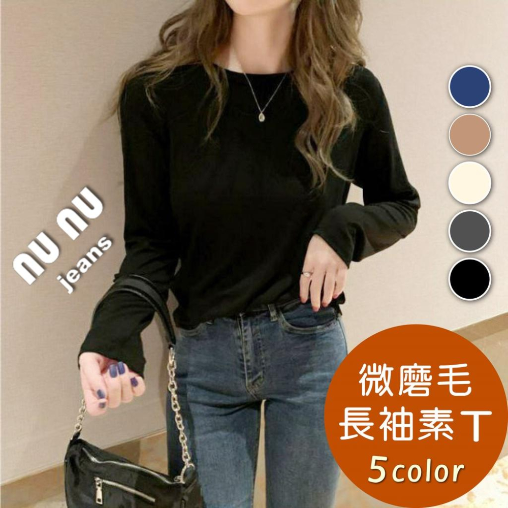 5色/韓妞必備/簡約/素色/微磨毛 /百搭/長袖 t恤/女長袖素t/秋冬/女生上衣/ 圓領t恤/大學t/素t/棉T