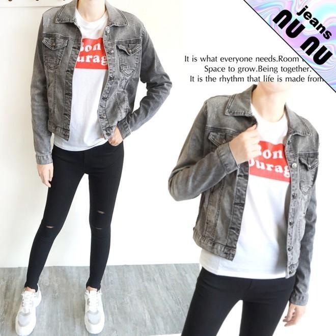 黑灰個性刷色 小寬鬆 水洗 BF風 牛仔外套 歐美簡約風 百搭立領 男友風 外套夾克外套NN.791-168