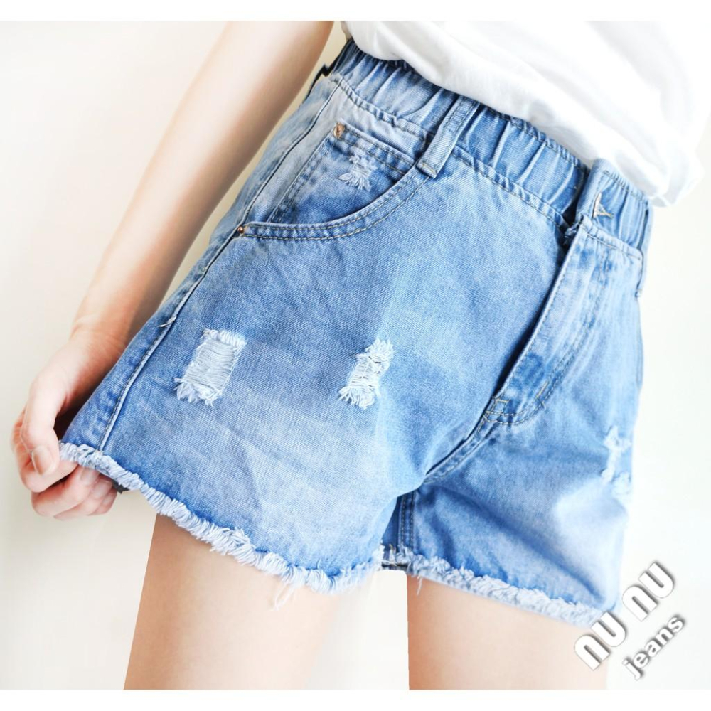 後鬆緊鈕釦拉鍊牛仔短褲 休閒短褲素面褲管顯瘦A字抓鬚丹寧 NN.131-859