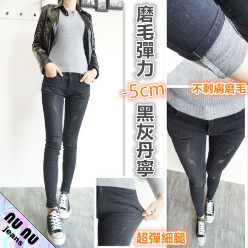 磨毛褲.刷毛褲-5cm超細腿顯瘦刷毛褲牛仔褲黑灰丹寧牛仔長褲NN.130-010