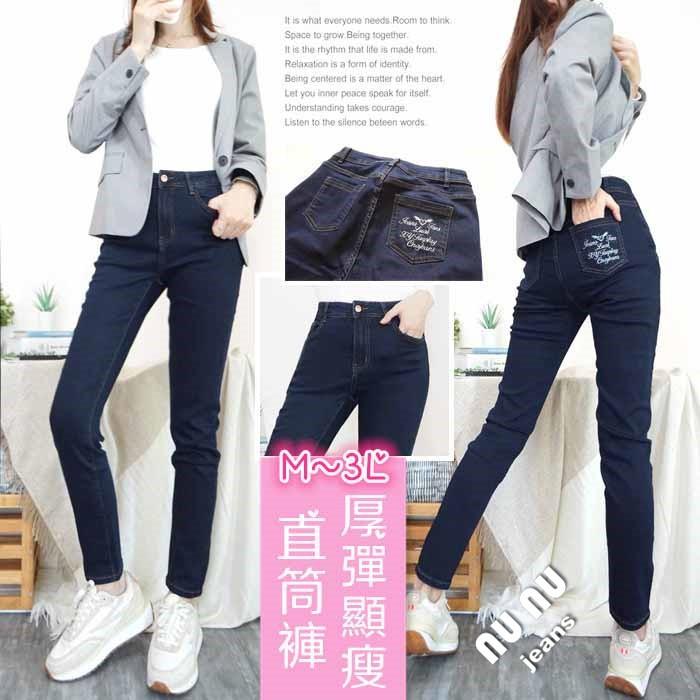 M~3L厚磅挺版深藍顯瘦直筒褲 牛仔褲 直筒牛仔褲 牛仔長褲 高腰長褲 大尺碼牛仔褲 素色牛仔褲 直筒褲.787.448